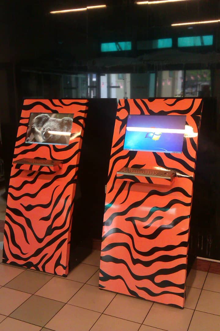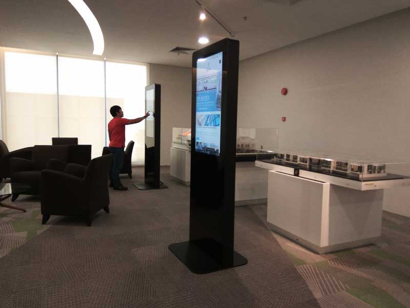 • Custom made info kiosk in various design, complete with interactive touch screen and application